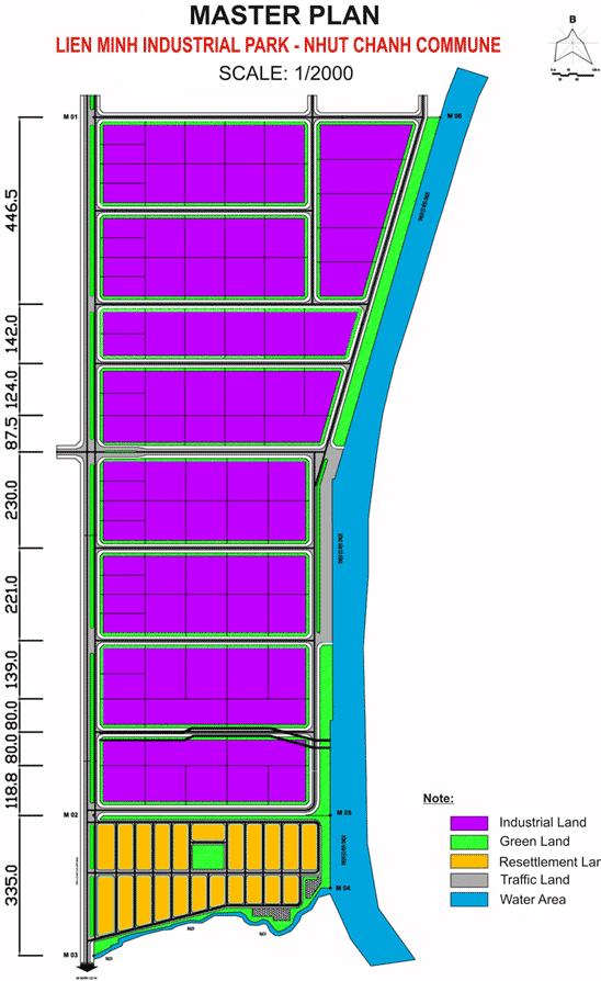 The project is very convenient in terms of traffic: Vam Co Dong river adjacent, adjoining the national highway 1A, the Ben Luc town center and 2km from the center of town with 30km. Given the size 122ha, the project is divided into several different areas to sell to customers.